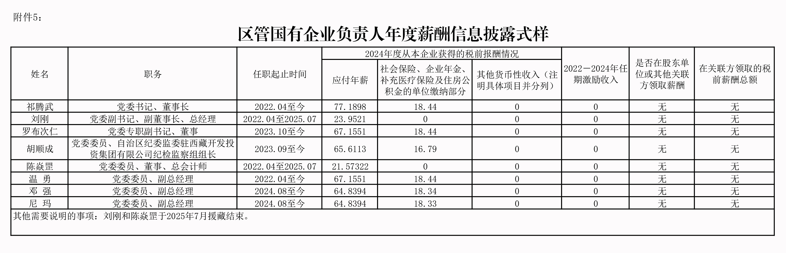 區(qū)管國有企業(yè)負責人年度薪酬信息披露式樣
