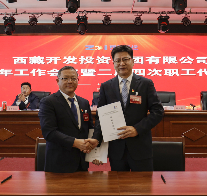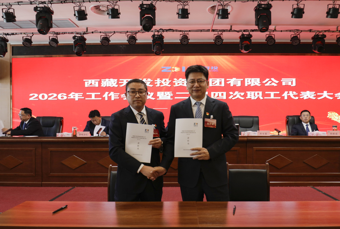 會上,集團管理方首席代表肖長歌與集團職工方首席代表羅布次仁簽訂了《集體合同》及專項附屬集體合同。肖長歌代表集團與各部門、各單位代表簽訂了今年的目標(biāo)責(zé)任書。