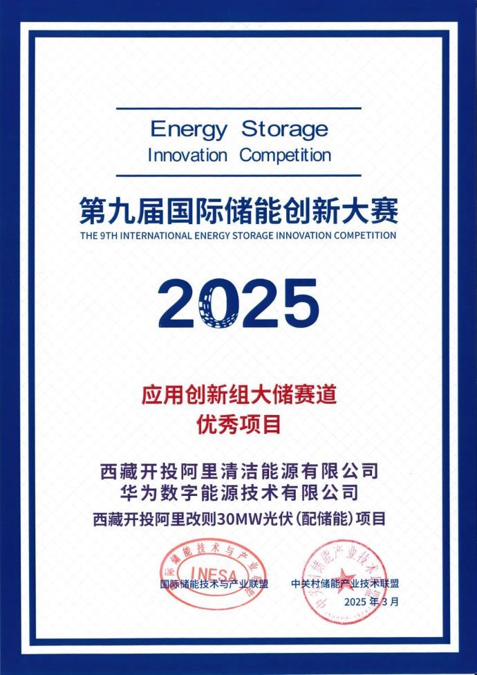 捷報傳來丨阿里改則光伏項目獲國際儲能創(chuàng)新大賽優(yōu)秀項目獎