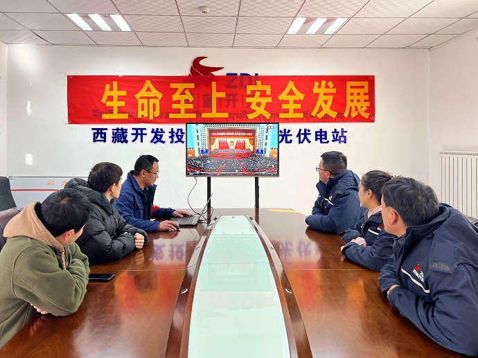 崗巴光伏電站全體干部職工收聽收看開幕會盛況