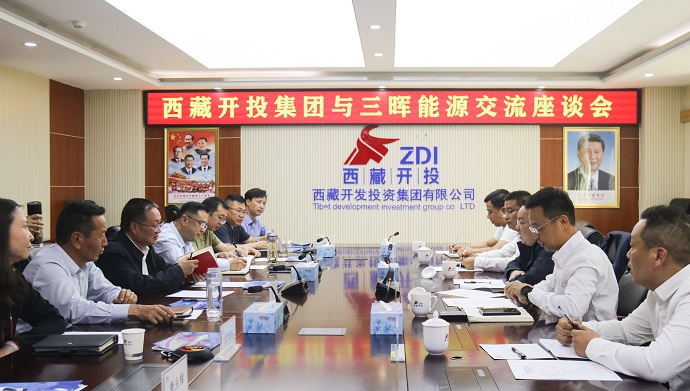 祁騰武對(duì)胡坤和鄧棟一行來訪表示歡迎,并對(duì)三暉電氣、三暉能源長期以來支持西藏開投的發(fā)展與建設(shè)表示感謝。他表示,西藏?fù)碛胸S富的水力、光伏、風(fēng)能和地?zé)崆鍧嵞茉促Y源,在國家“雙碳”戰(zhàn)略目標(biāo)下,儲(chǔ)能事業(yè)能有效提升清潔能源資源利用率和傳輸平穩(wěn)度,有效調(diào)節(jié)電力供應(yīng)結(jié)構(gòu)性不平衡問題,發(fā)展?jié)摿薮?。西藏開投作為西藏自治區(qū)唯一的清潔能源產(chǎn)業(yè)集團(tuán),根植西藏綠色能源、清潔能源開發(fā)利用領(lǐng)域多年,始終致力于推進(jìn)“一基地兩示范”建設(shè)。希望雙方加強(qiáng)溝通交流,發(fā)揮自身優(yōu)勢(shì),以市場(chǎng)為導(dǎo)向,積極拓展多領(lǐng)域、全方位合作機(jī)會(huì),創(chuàng)新合作模式參與西藏清潔能源發(fā)展建設(shè),提升市場(chǎng)競(jìng)爭(zhēng)力,讓雙向奔赴變雙向成就,樹立國有企業(yè)和民營企業(yè)合作典范,推動(dòng)西藏清潔能源產(chǎn)業(yè)高質(zhì)量發(fā)展邁上新臺(tái)階。