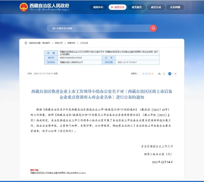 為積極響應(yīng)自治區(qū)人民政府《西藏自治區(qū)推進(jìn)企業(yè)上市“格?;ㄐ袆?rdquo;計劃》等文件精神,經(jīng)過自愿申報、主管部門初審、專家評審和公示等程序,近日,西藏自治區(qū)推進(jìn)企業(yè)上市工作領(lǐng)導(dǎo)小組辦公室公布了全區(qū)上市后備企業(yè)資源庫名單。西藏開發(fā)投資集團(tuán)有限公司和西藏開投果多水電有限公司兩家企業(yè)成功入選西藏自治區(qū)“格?;ㄐ袆?rdquo;計劃重點(diǎn)上市后備企業(yè)資源庫。