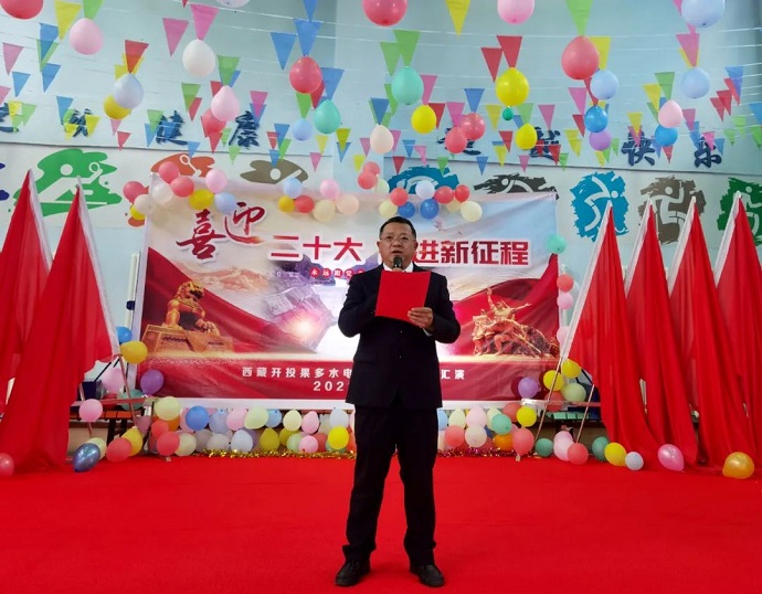 果多水電公司董事長、總經(jīng)理吳勇出席演出并致辭。他指出,黨的二十大即將召開,這是在進入全面建設社會主義現(xiàn)代化國家新征程的關鍵時刻召開的一次十分重要的大會,這是即將科學謀劃未來5年乃至更長時期黨和國家事業(yè)發(fā)展的目標任務和大政方針的重要大會,這是事關黨和國家事業(yè)繼往開來、事關中國特色社會主義前途命運、事關中華民族偉大復興的重要大會。作為國有企業(yè)的干部職工,作為推進偉大事業(yè)的堅強力量,我們每個人都有必要從現(xiàn)在開始提振精神、頑強奮斗,以實實在在的行動向黨的二十大獻禮,以奮斗的腳步為偉大事業(yè)積蓄力量。