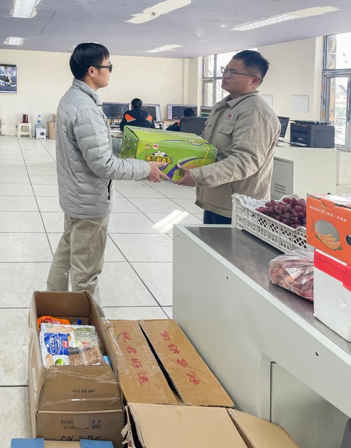 在2023年新春佳節(jié)來臨之際,金河水電公司工會(huì)到吉昌光伏及瓦托水電廠看望慰問新春佳節(jié)仍堅(jiān)持奮戰(zhàn)在生產(chǎn)一線的干部職工,并送上新春祝福與慰問品。