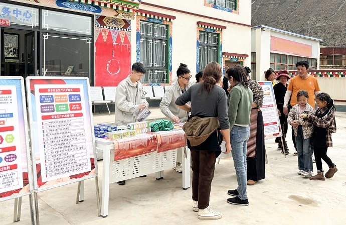 活動現(xiàn)場通過設(shè)置安全宣傳展板、懸掛橫幅、發(fā)放安全宣傳手冊和安全宣傳小禮品等方式,向群眾集中宣傳農(nóng)村消防安全、汛期安全、燃?xì)獍踩?、地震?yīng)急避險、防火逃生等知識,并與波乃村村委會簽訂了應(yīng)急救援互助協(xié)議書。