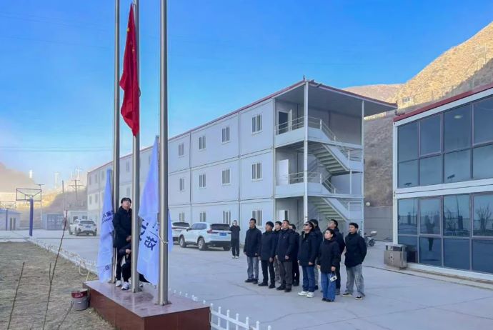 晨光初照,全體員工齊聚營地廣場,舉行莊嚴(yán)的升國旗儀式。隨著國歌奏響,五星紅旗冉冉升起,大家莊嚴(yán)肅立,行注目禮,愛國之情油然而生,為新的一年注入了滿滿的正能量。
