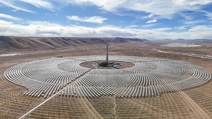 截至2025年12月底,這里已豎起一萬(wàn)余塊定日鏡,巨大的“太陽(yáng)花”緩緩綻放,汲取著高原最慷慨的陽(yáng)光;吸熱塔則將像一座巨大的能量豐碑,儲(chǔ)存熱量,點(diǎn)亮黑夜。此刻,嚴(yán)寒與光熱,荒涼與創(chuàng)造,寂靜與轟鳴,在這片“世界屋脊”之巔,達(dá)成了奇妙的交響。每一寸前進(jìn),都是對(duì)自然極限的挑戰(zhàn),也是為這片古老土地注入清潔能量的堅(jiān)實(shí)足印。