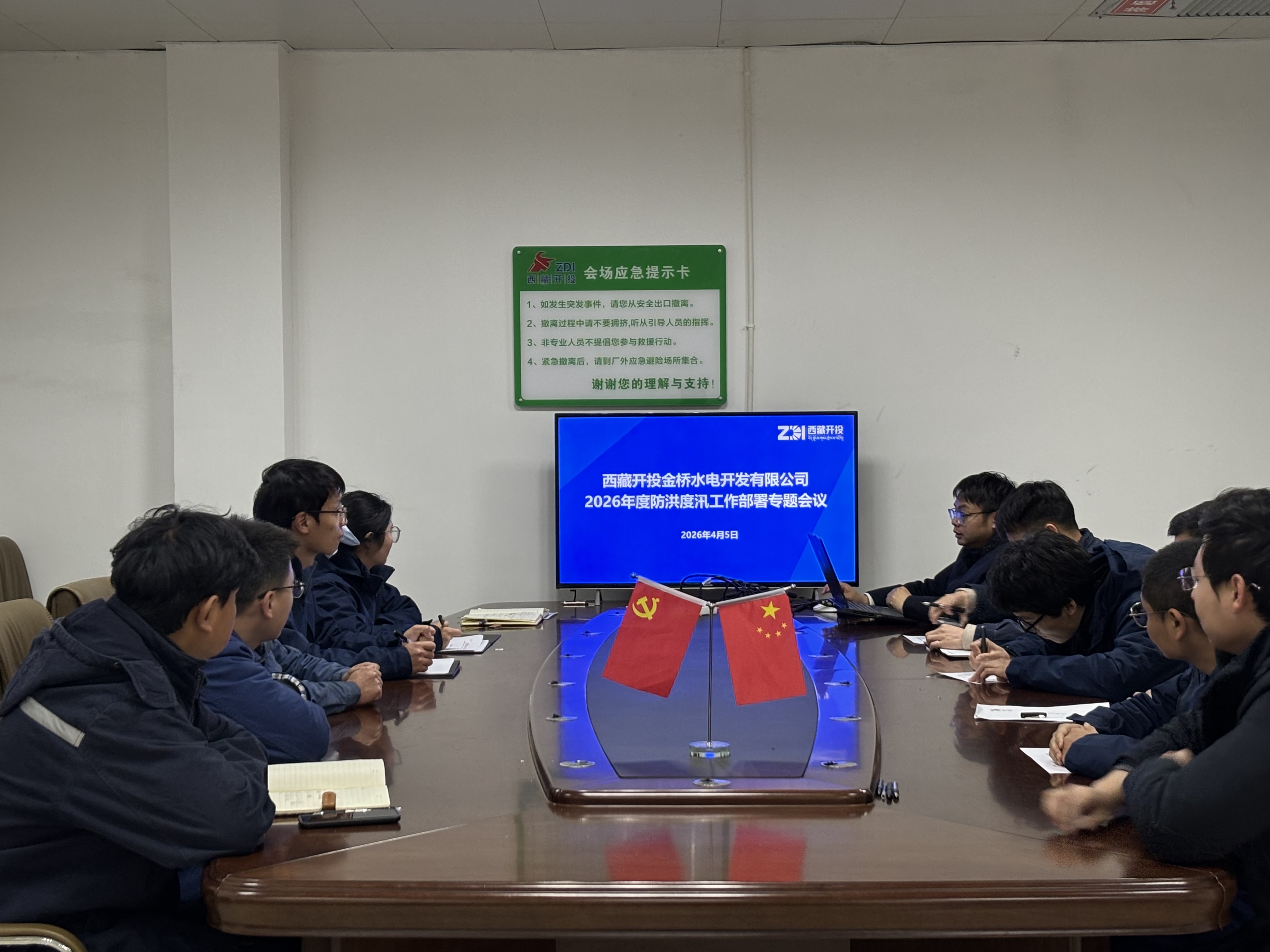會議傳達學習了《國家能源局綜合司關于切實做好2026年電力行業(yè)防汛抗旱工作的通知》《關于規(guī)范開展2026年水電站大壩汛情報送工作的通知》以及《西藏自治區(qū)防汛抗旱指揮部辦公室關于切實做好汛前準備工作的通知》精神,審議通過了公司2026年防洪度汛組織機構(gòu)設置方案及相關應急預案。各部門依次匯報了本部門防汛重點工作安排、隱患排查計劃及應急響應處置措施,公司領導結(jié)合實際工作,對隱患排查整治、防汛物資儲備、應急隊伍建設、值班值守規(guī)范等重點工作提出明確具體要求。會議強調(diào),全體干部職工要提高政治站位,強化責任擔當,嚴格落實各項防汛措施,確保組織到位、責任到位、預案到位、物資到位、演練到位,全力保障公司2026年安全平穩(wěn)度汛。
