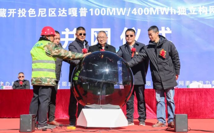 西藏開投色尼區(qū)達嘎普獨立構網(wǎng)型儲能項目并網(wǎng)儀式現(xiàn)場。達娃 攝