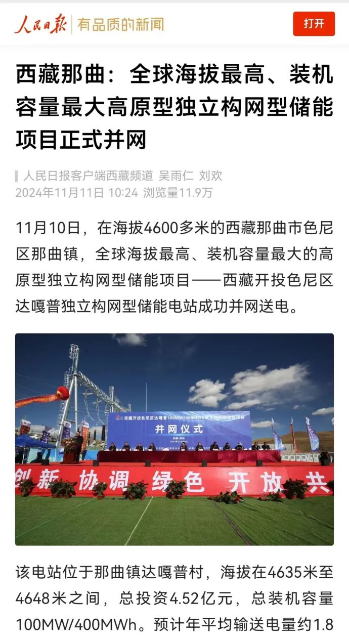 項目并網(wǎng)消息獲人民日報、新華社、央視新聞、光明日報、科技日報、中國新聞網(wǎng)、中國發(fā)展網(wǎng)、中國電力報、西藏日報、西藏衛(wèi)視、西藏商報、那曲融媒等各級媒體平臺宣傳報道。