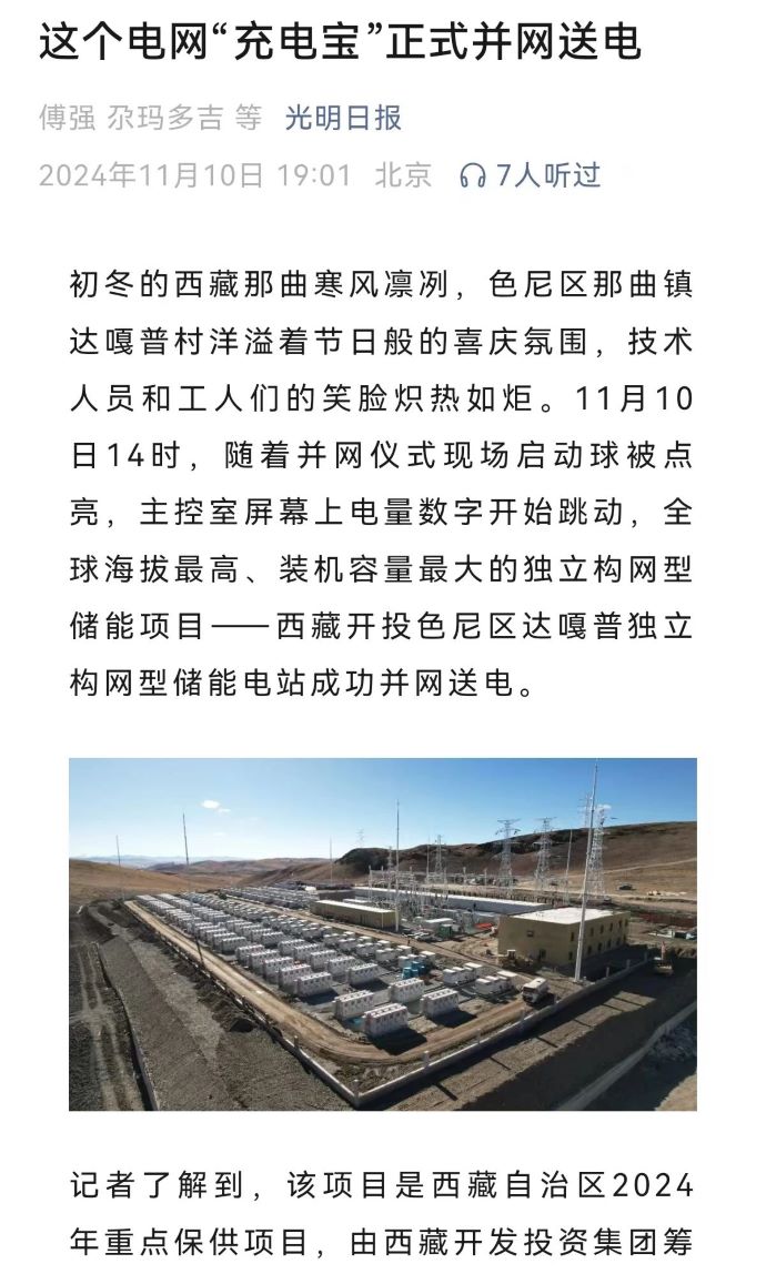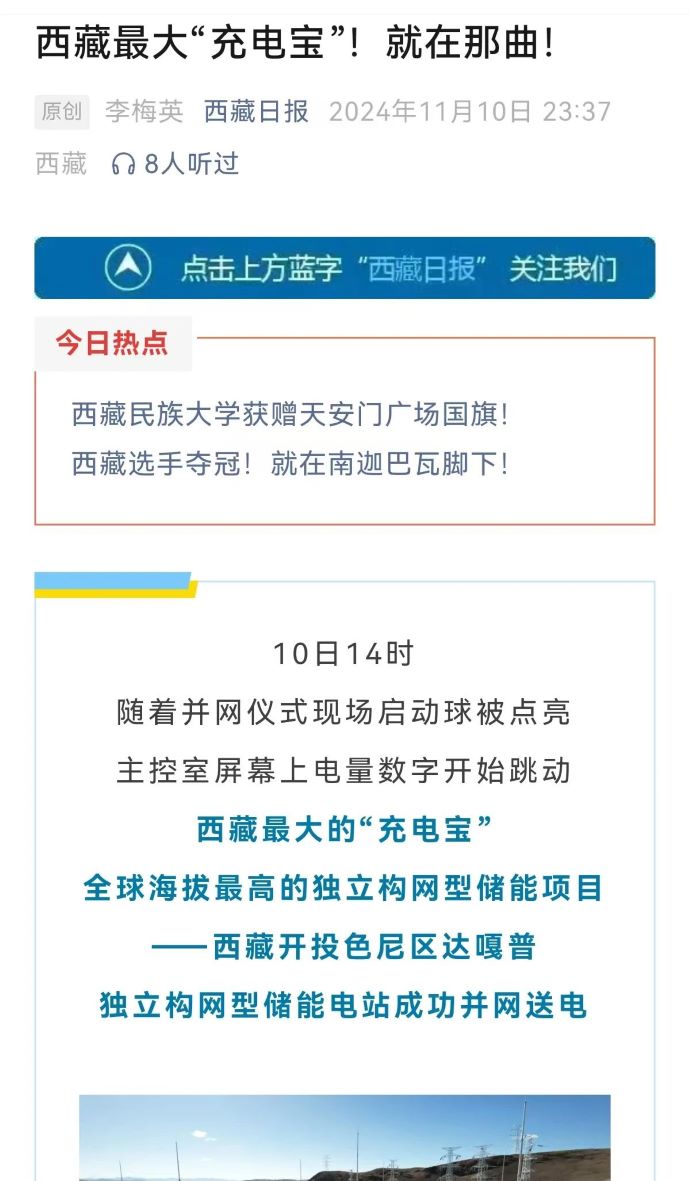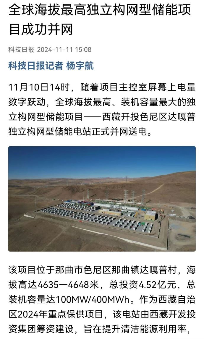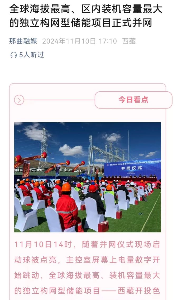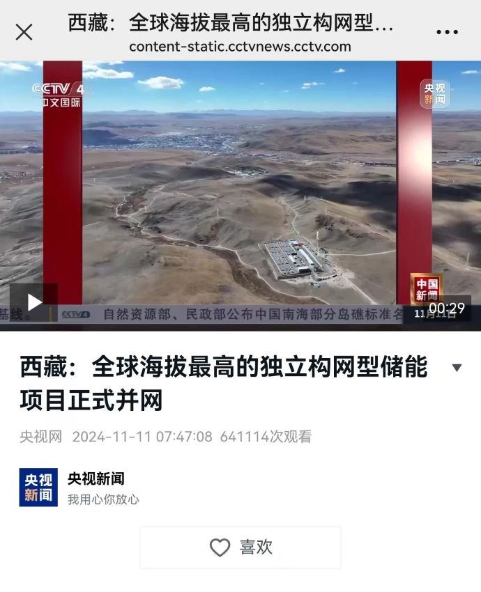 實力刷屏!各級媒體聚焦報道西藏開投色尼區(qū)獨立構網(wǎng)型儲能項目