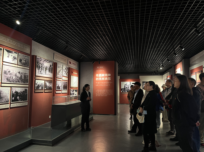 在講解員引導(dǎo)下,大家參觀了由“一生奉獻(xiàn)給黨的事業(yè)”“老西藏精神的光輝典范”“紅色基因代代相傳”三個(gè)單元組成的陳列展,認(rèn)真聆聽(tīng)了“從參加革命到解放西南、和平解放時(shí)期、在執(zhí)行協(xié)議的八年歲月、重返西藏、永不褪色的老西藏精神”等反映譚冠三將軍一生和西藏各族各界人士傳承老西藏精神的故事。