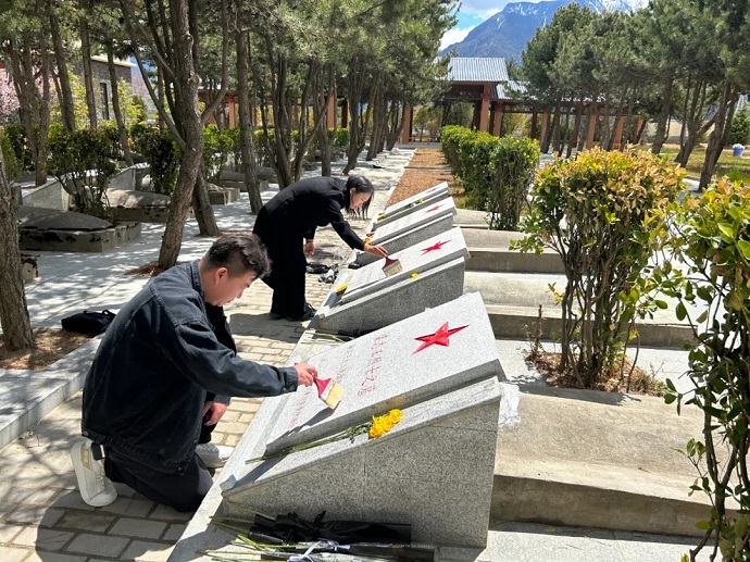 林芝市烈士陵園修建于1999年,共安葬烈士99名。這些革命烈士是在和平解放西藏、民主改革、中印自衛(wèi)反擊戰(zhàn)及社會主義建設(shè)時期,為保衛(wèi)國家和人民生命英勇犧牲的,為解放和發(fā)展西藏、保衛(wèi)邊疆、建設(shè)林芝做出了不朽的功勛,獻(xiàn)出了寶貴的生命。干部職工帶著對烈士們無限的緬懷和追思,在烈士墓葬區(qū)向各個革命時期英勇犧牲的烈士敬獻(xiàn)花束,并清掃了墓碑。