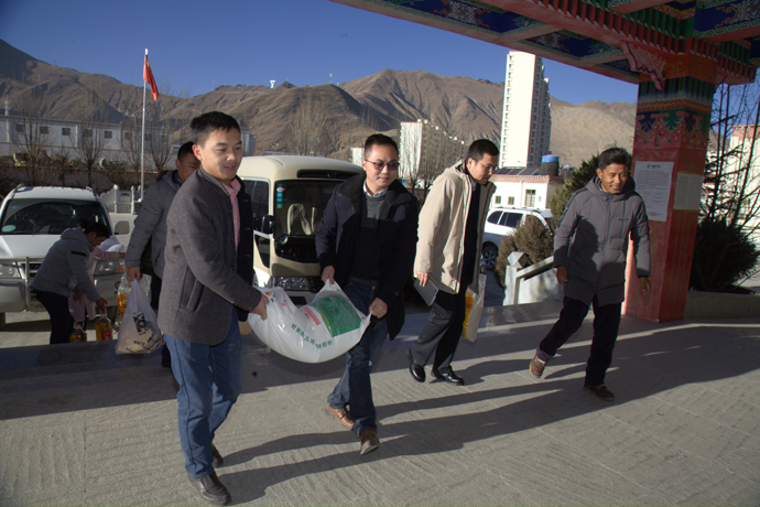 柳梧村村委達(dá)瓦書記對(duì)大家的到來(lái)表示熱烈的歡迎,對(duì)西藏開投集團(tuán)組織開展這項(xiàng)工作表示贊賞。他說(shuō):“西藏開投集團(tuán)是區(qū)管國(guó)有企業(yè)中第一家組織在職黨員進(jìn)我們社區(qū)開展慰問的企業(yè),意義重大,效果明顯。西藏開投集團(tuán)成立雖晚,但在積極參與社會(huì)主義新西藏建設(shè)中邁的步伐很大,工作做的實(shí)在,體現(xiàn)了西藏開投集團(tuán)的責(zé)任擔(dān)當(dāng)。通過今天的活動(dòng),不但加深了雙方的熟悉和了解,而且也讓柳梧村的牧民百姓,尤其是受到西藏開投集團(tuán)特殊慰問關(guān)懷的2戶老黨員更加感受到了黨的溫暖和關(guān)愛,更加會(huì)珍惜這個(gè)來(lái)之不易的幸福生活”。