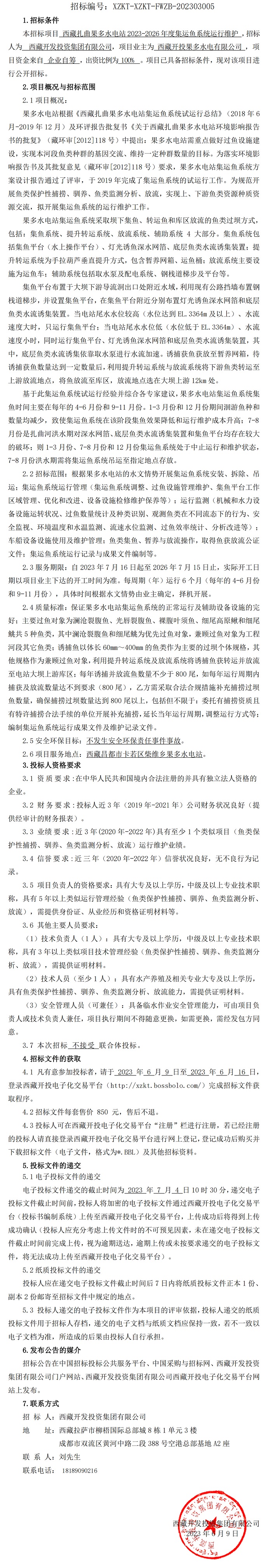 西藏扎曲果多水電站2023-2026年度集運魚系統(tǒng)運行維護招標(biāo)公告