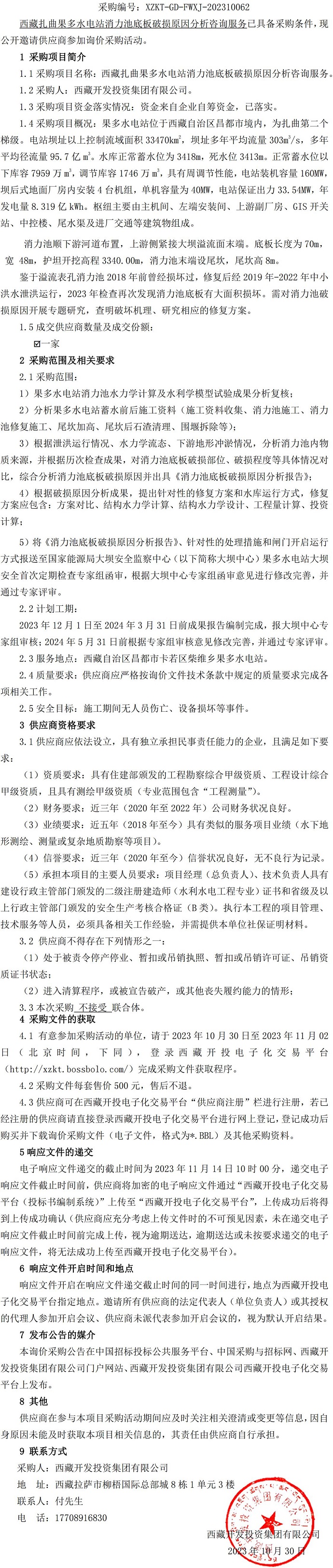 西藏扎曲果多水電站消力池底板破損原因分析咨詢服務(wù)詢價采購公告