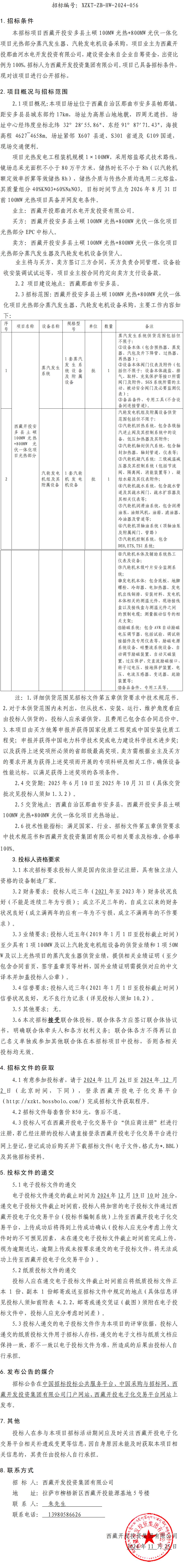 西藏開投安多縣土碩 100MW 光熱+800MW 光伏一體化項目光熱部分蒸汽發(fā)生器、汽輪發(fā)電機設(shè)備采購招標(biāo)公告