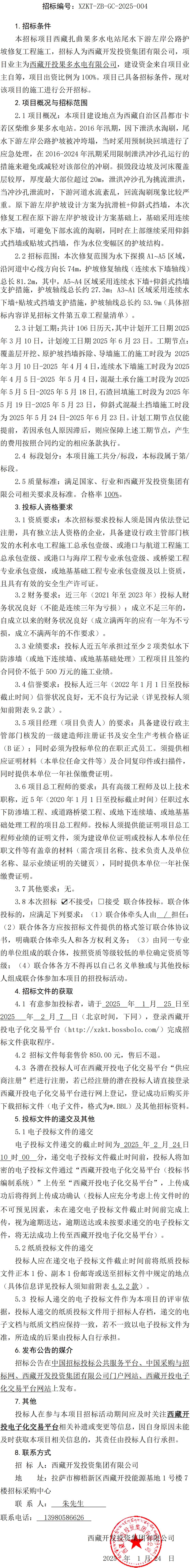 西藏扎曲果多水電站尾水下游左岸公路護坡修復(fù)工程施工招標(biāo)公告